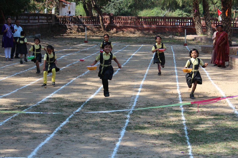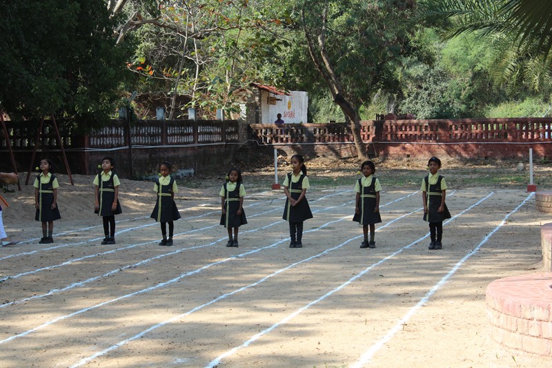 A School has a large playground, where many sporting activities, like athletics (100 m Race, Relay Race, Lemon and Spoon Race, Potato Race), Kabaddi, Kho-Kho, Throw-Ball, etc. There are annual competitions for these in the Sport Day. The School also organizes parades on national commemorative festivals.